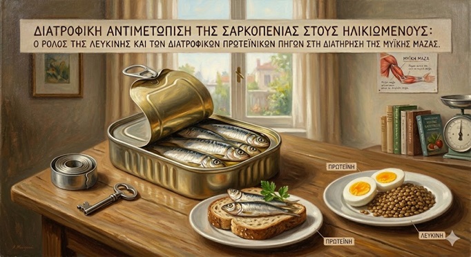 Η σαρκοπενία αποτελεί σημαντική κλινική πρόκληση της γήρανσης, η οποία μπορεί να αντιμετωπιστεί αποτελεσματικά μέσω στοχευμένης διατροφικής παρέμβασης. Η λευκίνη αποτελεί κεντρικό ρυθμιστή της μυϊκής πρωτεϊνοσύνθεσης, ενώ οι σαρδέλες, τα γαλακτοκομικά προϊόντα και η παρμεζάνα αποτελούν ισχυρές διατροφικές πηγές της. Η κινόα και τα όσπρια λειτουργούν συμπληρωματικά στο συνολικό διατροφικό πρότυπο.